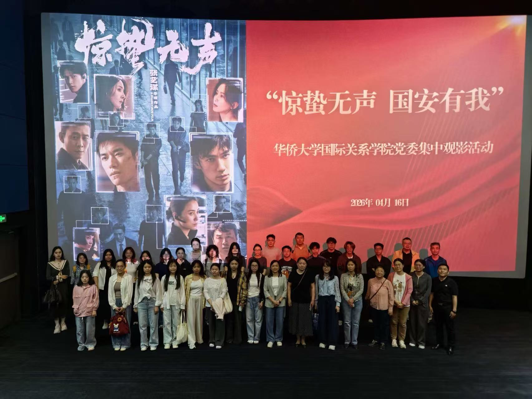 为深入贯彻总体国家安全观,强化师生国家安全意识,弘扬隐蔽战线工作者的忠诚担当精神,4月16日,学院党委组织师生开展以“惊蛰无声,国安有我”为主题的观影活动,集体观看当代国安题材影片《惊蛰无声》。