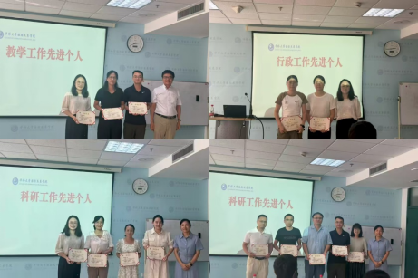 大会对过去一学年在教学、科研与行政工作中表现突出的先进个人进行了表彰,分别授予“教学工作先进个人”“科研工作先进个人”“行政工作先进个人”荣誉称号。