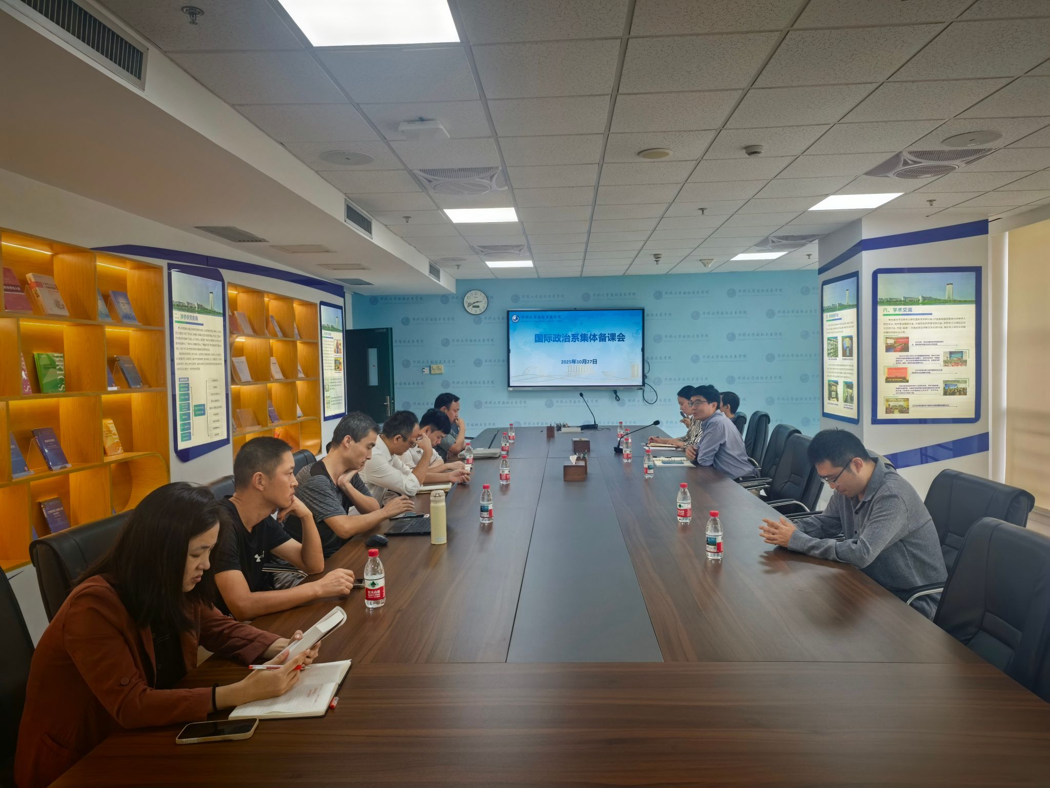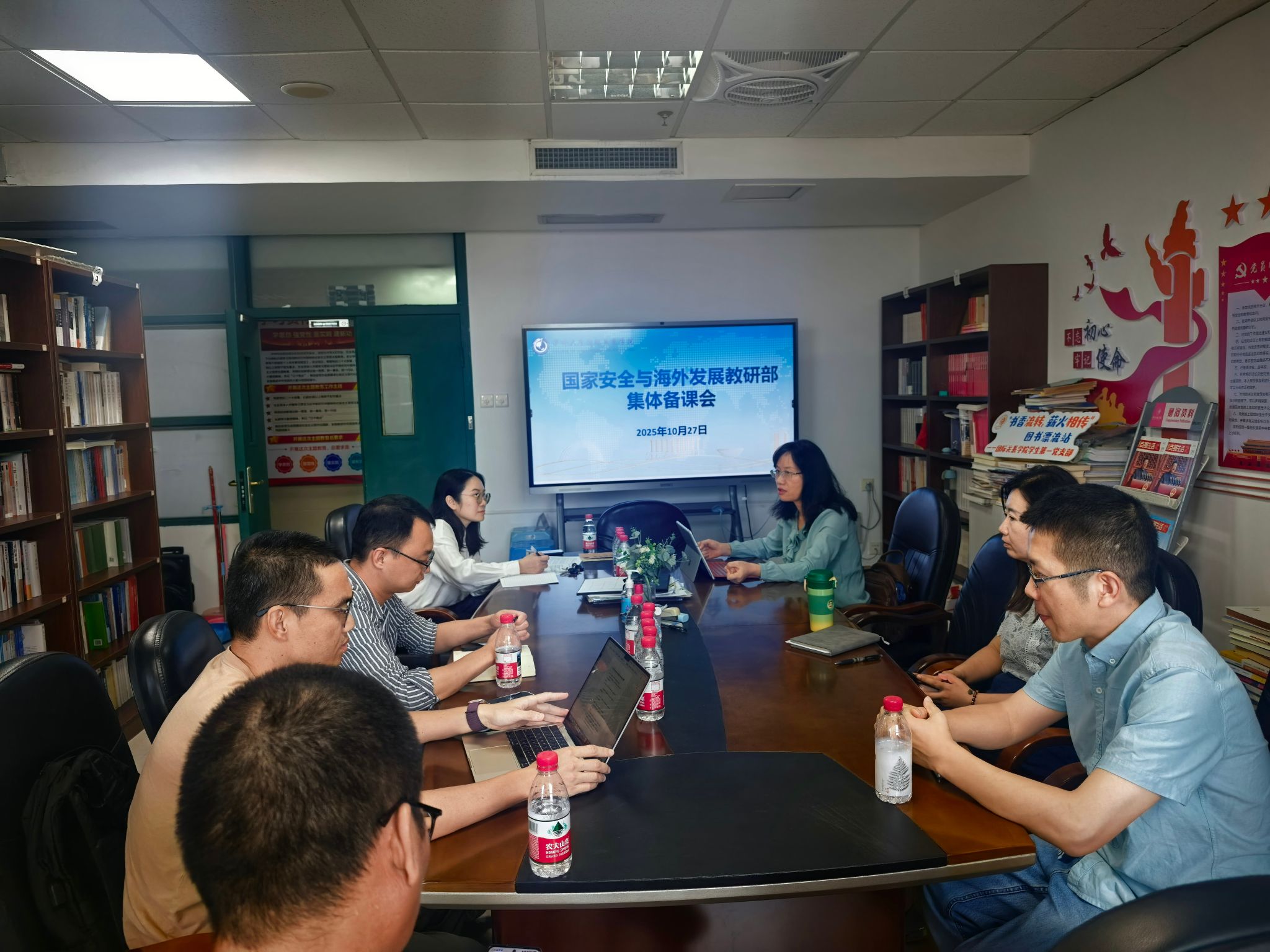 2025年10月27日下午,永利23411集团国家安全与海外发展教研部、政治学与侨务教研室、国际政治系分别组织召开集体备课会,聚焦“本科培养方案优化”与“课程思政建设”两大核心议题,结合各系部专业特色展开深入研讨。会议由各系部主任主持,全体教师参加。